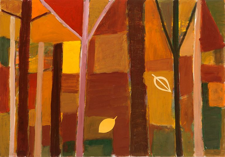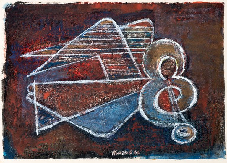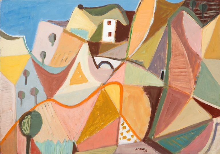 Heiner Knaubs Interesse an der Reduktion auf vereinfachte Formen kamen auch Darstellungen von Mineralien, Berge und der Küste von Ischia sehr entgegen. Auch Landschaften reduzierte er gerne auf stark farbige Flächen.