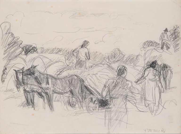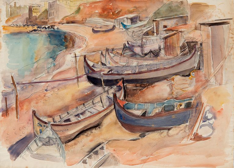 Heiner Knaubs Bilder während seiner Zeit als Wehrmachtssoldat in Rumänien sind noch sehr konkret. Seine bevorzugten Motive – Häuser, Landschaften, Menschen, Boote – werden später zunehmend abstrakter.-